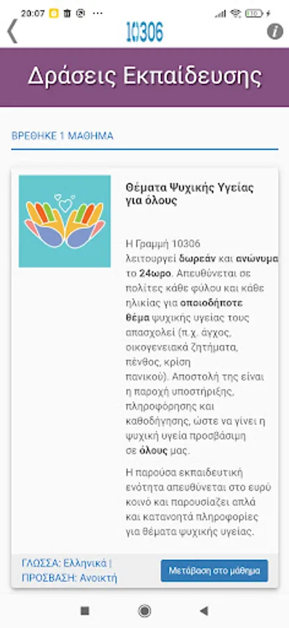 The educational toolbox (library.10306.gr) is a digital platform that supports the content repository, training and collaboration services of Line 10306 and is addressed to both the specialists and collaborators of Line and to the interested citizens.