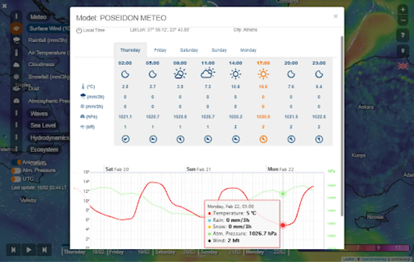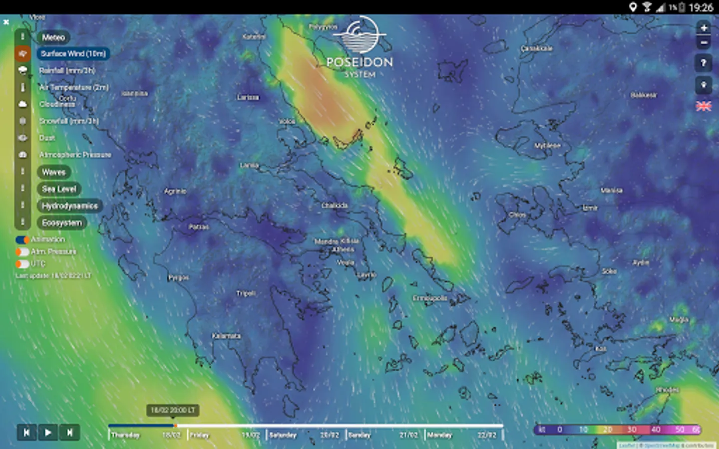 POSEIDON System app provides easy access to the updated view of the meteorological, wave, hydrodynamic and ecosystem forecasts provided in POSEIDON System official website poseidon.hcmr.gr. The forecasts are updated daily covering the next five days.