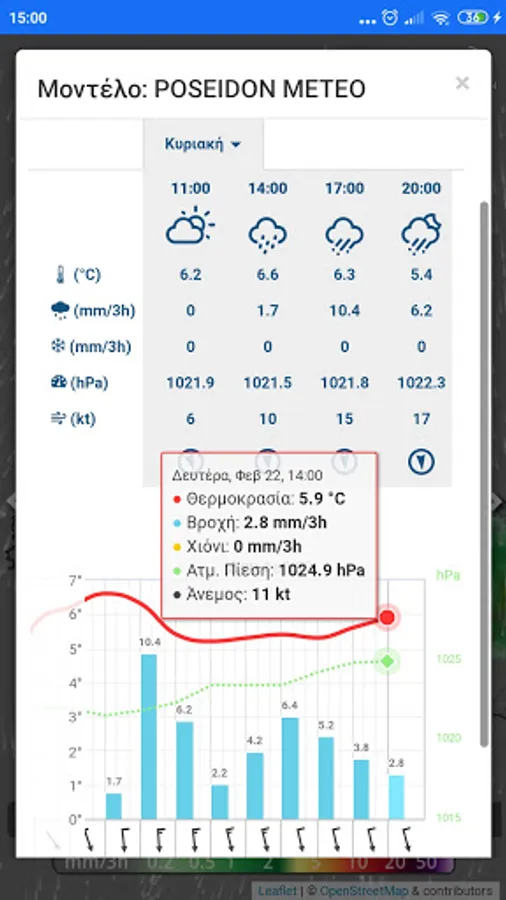 City labels: Clicking on city labels, opens a summary of the forecast for the whole forecasting period for the specific city.