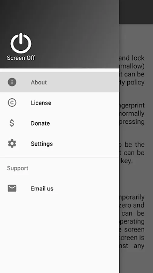 It is distributed as Free Open Source Software and its source code is available at https://github.com/jsalatas/ScreenOff