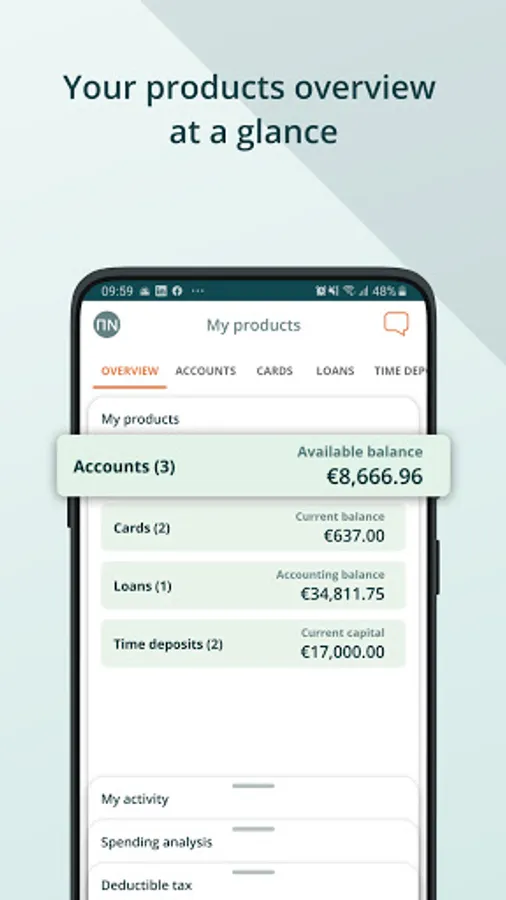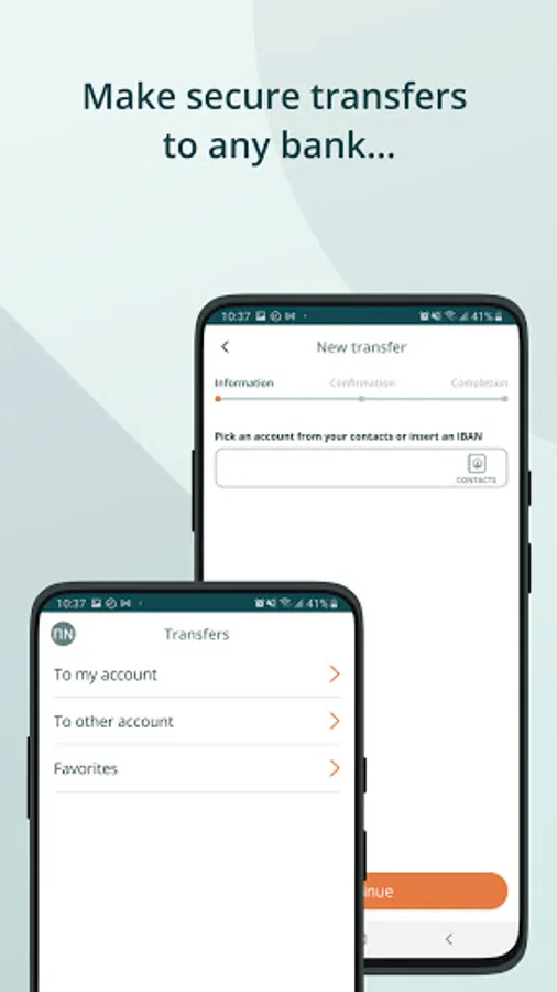 Pull down at the bottom of the screen with your finger to refresh the data of the page you are on. Choose between light, dark or auto theme. Log out of the app by using the “Shake to log out” function. Apply your own transfer/payments limits, so that the danger of mistakenly transferred capital from your account to third parties is reduced. Find out, about your expenses per year and by type with the built-in "Spending Analysis" tool. Calculate your deductible tax using the built-in tool. With one password you can track and manage multiple accounts (corporate and individual), by activating the "single sign-on" service, by visiting one of our branches.
