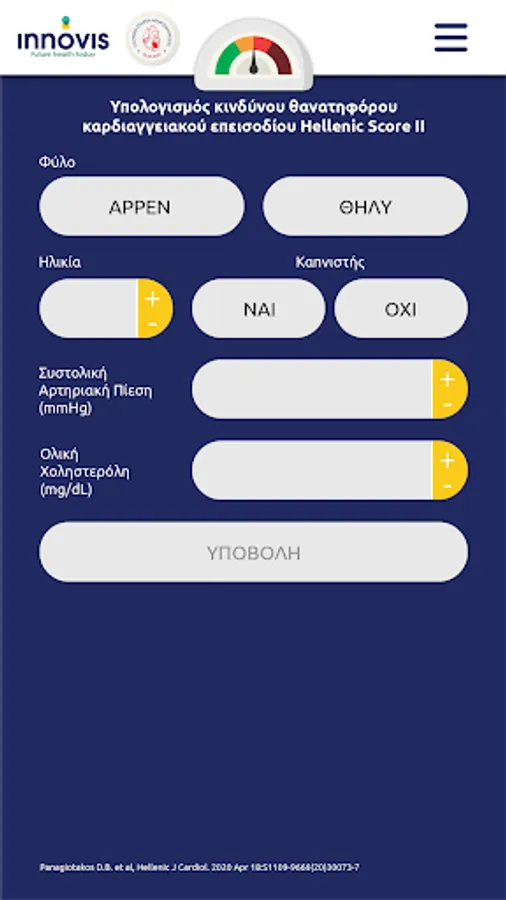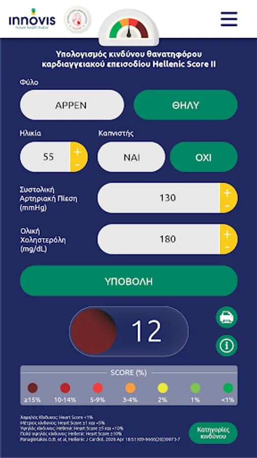 It is worth noting that patient data is not stored in the application. This application is for informational use only and is not intended to provide therapeutic support or diagnostic assistance. This Application is supported by the Hellenic Atherosclerosis Society