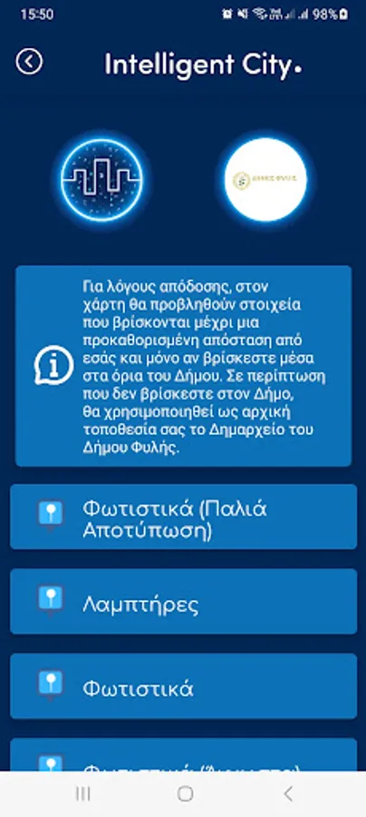 It is also possible to display the imprint points of the Municipality of Fylis, using the CityPoints platform of Intelligent City.