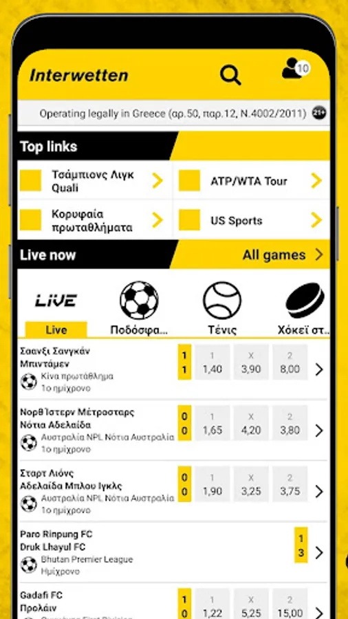 Sports Betting on football, tennis (WTA, ATP), ice hockey, basketball and other sports with the Interwetten App. You are given the opportunity to play your game with Interwetten and its, over thirty years, experience in Sports and Live Betting.