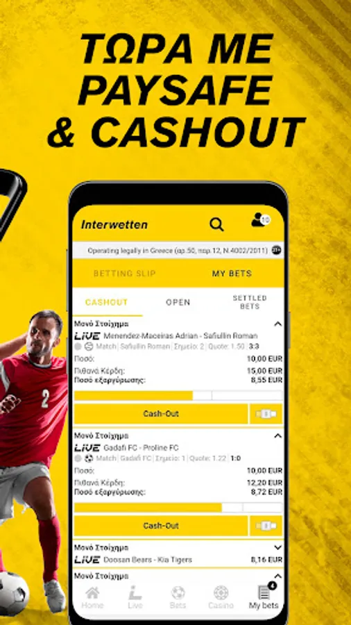 With Cash Out you have the ability to redeem your bet through the App during the course of the event and secure part of your winnings or limit possible losses.