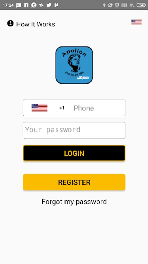For this application to operate corectly it is necessary to create and register a new account. To activate the account a unique code will be sent via sms to your mobile phone number.