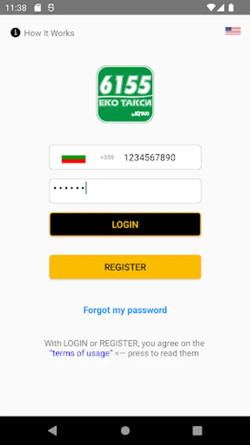 For this application to operate corectly it is necessary to create and register a new account. To activate the account a unique code will be sent via sms to your mobile phone number.
