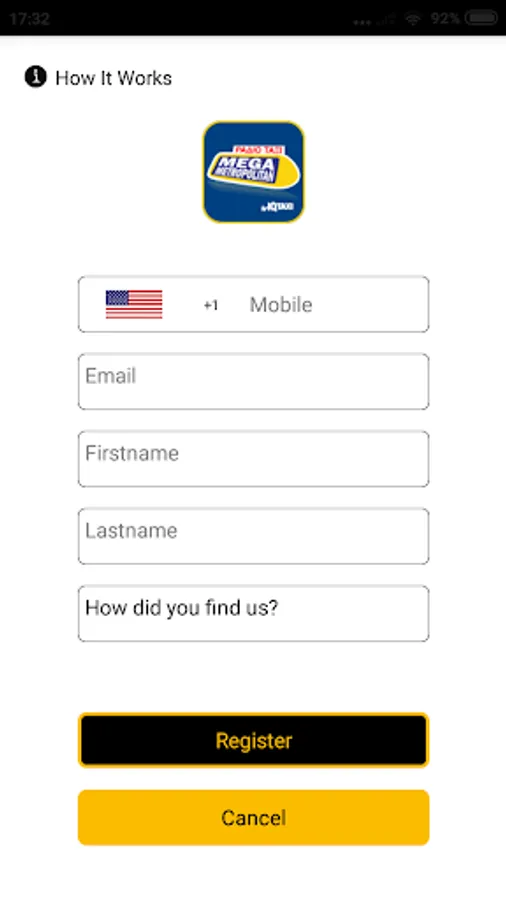 For this application to operate corectly it is necessary to create and register a new account. To activate the account a unique code will be sent via sms to your mobile phone number.