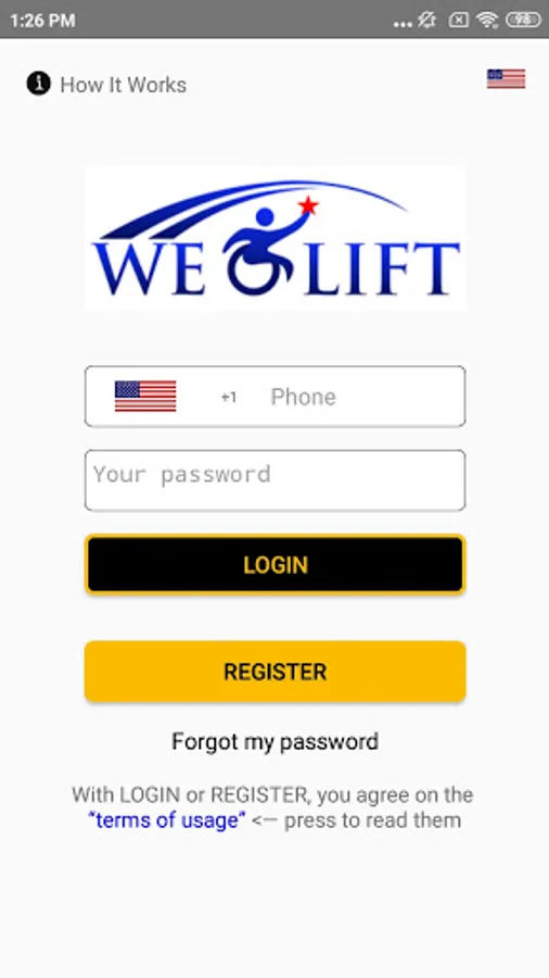 For this application to operate correctly it is necessary to create and register a new account. To activate the account a unique code will be sent via sms to your mobile phone number.