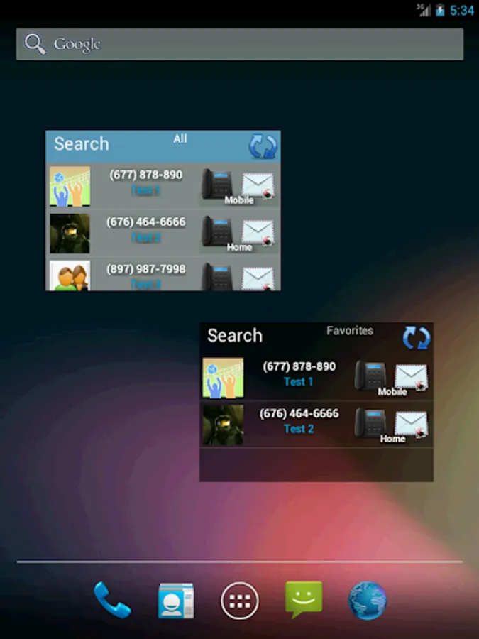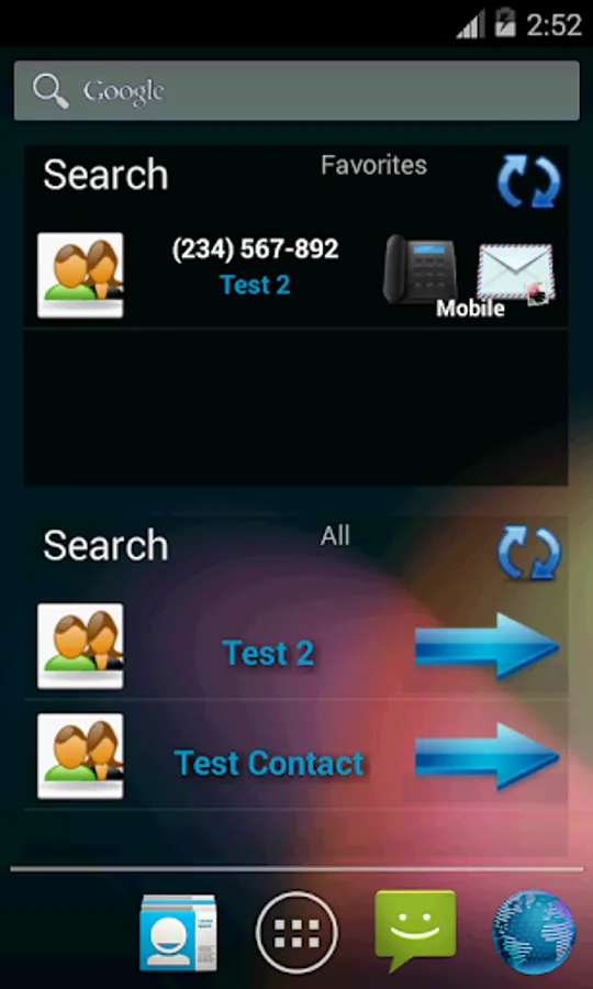 This is a simple widget that shows your phone contacts (all, favorites-starred or any other group, including WhatsApp and Viber contacts) as a scrollable list. You can call or send SMS to any of your contacts. For WhatsApp and Viber contacts you can start a call or chat.