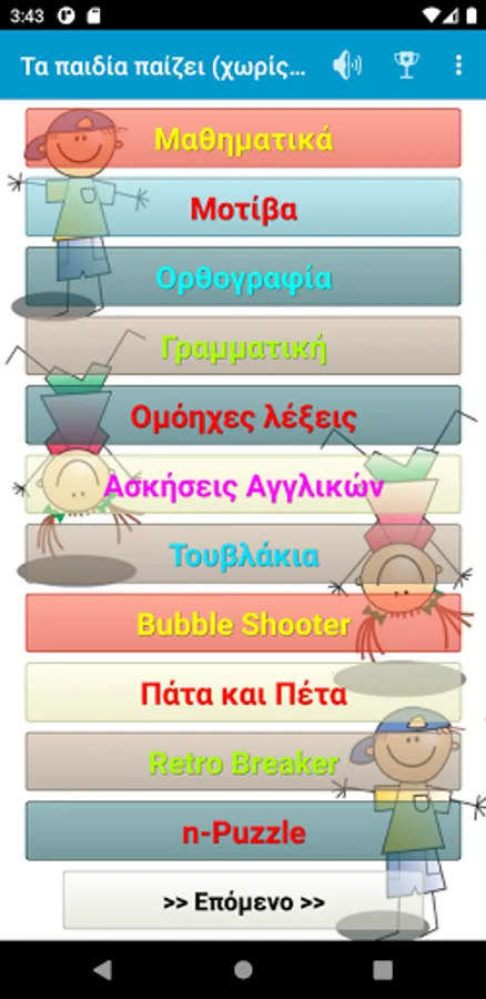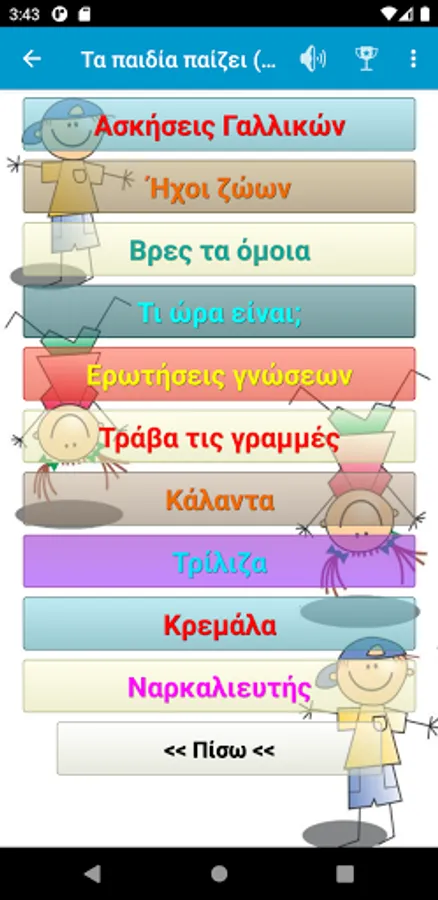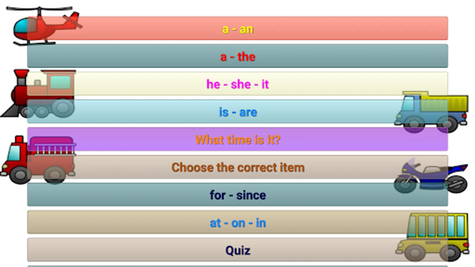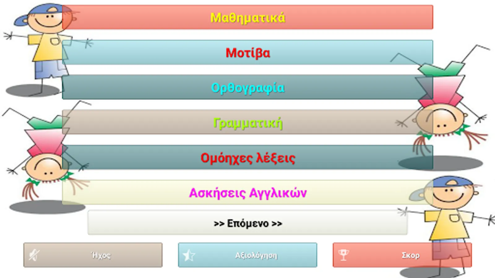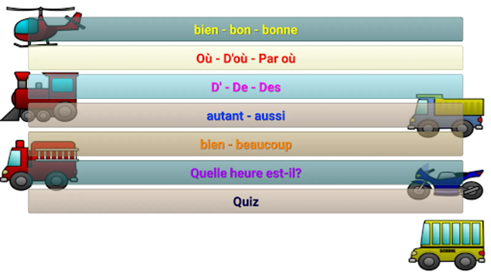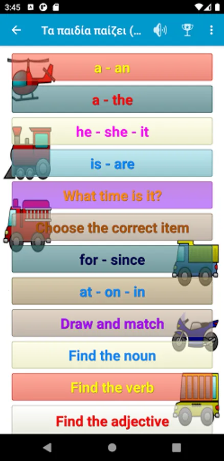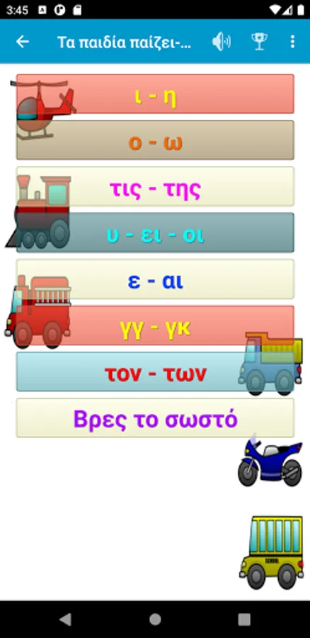 A fun application for first graders (and not only) with learning activities (spelling, actions, English and French exercises) but also fun (animal sounds, memory game, etc.).