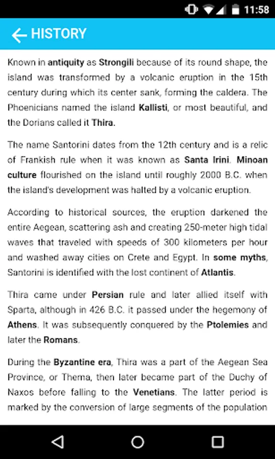 The Cyclades are in fact the peaks of the mountains of the Aegais, a mountainous terrain, which was submerged in geological times, about 5 million years ago. The earthquake and volcanic activity played an important role in all the geomorphologic processes. Volcanic eruptions that took place before 35.000.000 years (with the volcanic eruption of Santorini, 17th- 16th century B.C. being the most important) constitute part of the geological disruptions that shaped Aegais.