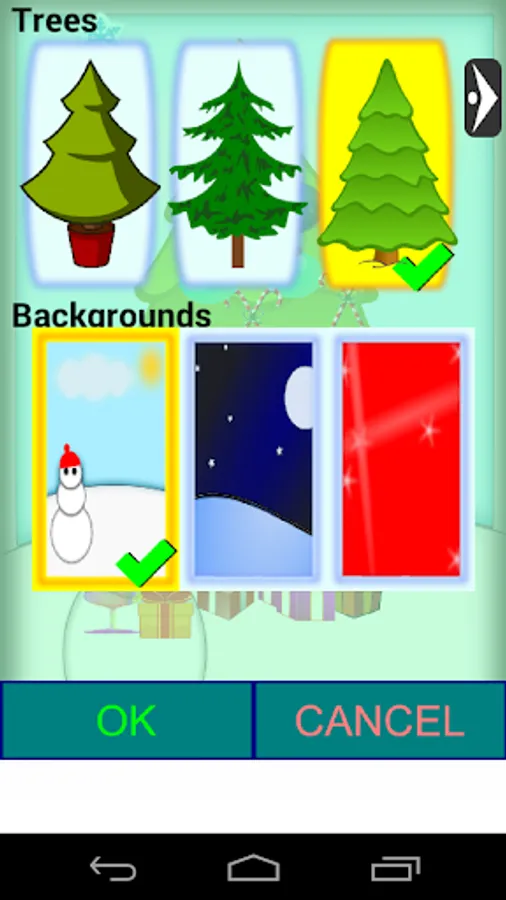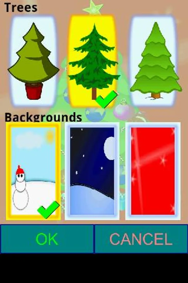 A funny and creative Christmas game. You can decorate your tree with a great variety of Christmas ornaments. If you want more you can create your own! Your imagination is the limit. Choose the tree you wish to decorate, fit it to your favorite background, make the decoration and take screenshots of your creations to share with your friends and family!