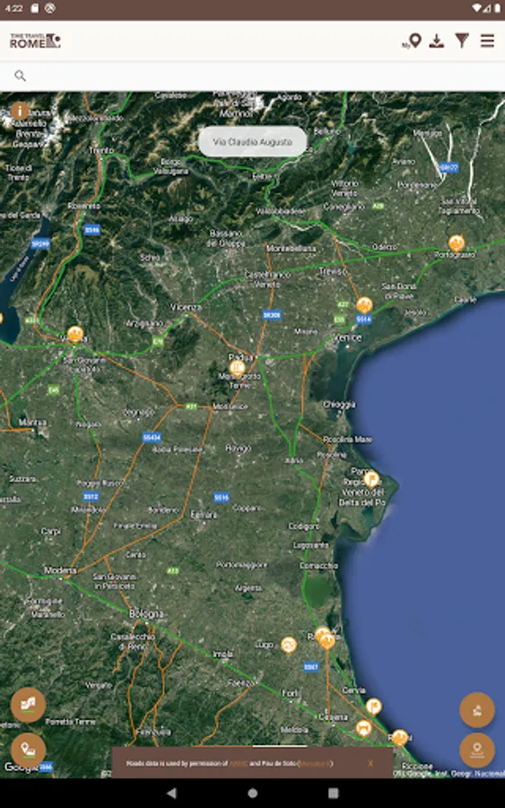 TimeTravelRome is a free travel, archaeology, and literature guide to the Ancient Roman Empire. It is a history / travel mobile app that finds and describes - for free - every significant ancient Roman city, fortress, theater or sanctuary - in Europe, Middle East as well as across North Africa. TimeTravel Rome is the only mobile app to include a map of all Roman roads and it includes thousands of photos and hundreds of ancient texts with all geographical places indexed inside. TimeTravel Rome is made with passion for anyone fascinated by ancient Roman history, for travelers to Rome, history geeks, classics teachers, students, roman literature and roman culture amateurs.
