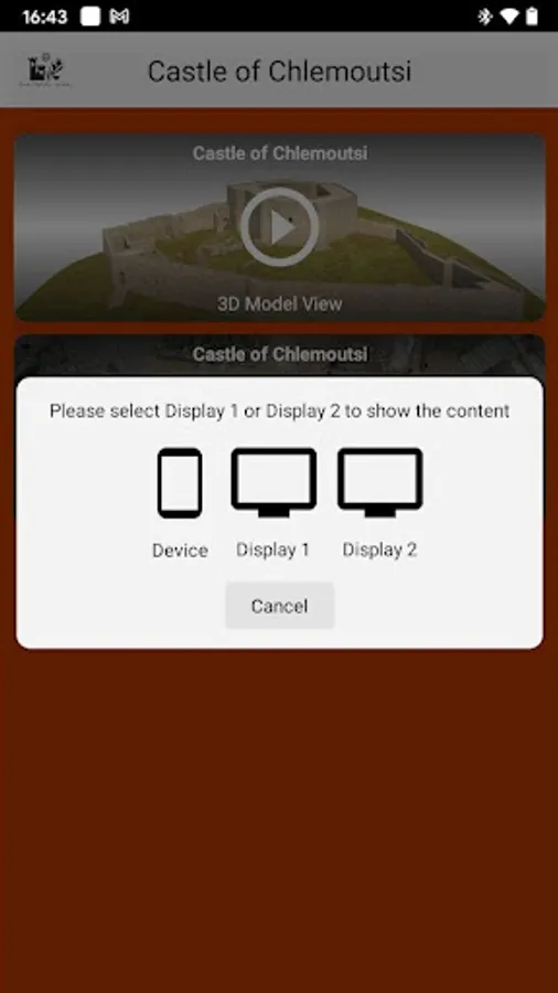 This app. provides extra media content (image, video) for the Visitors of Chlemoutsi Castle Museum, in Peloponnese (Greece). When running, it detects BLE signal from the BLE transmitters which are attached on the exhibits in the museum and suggest extra content of each certain exhibit to the user.