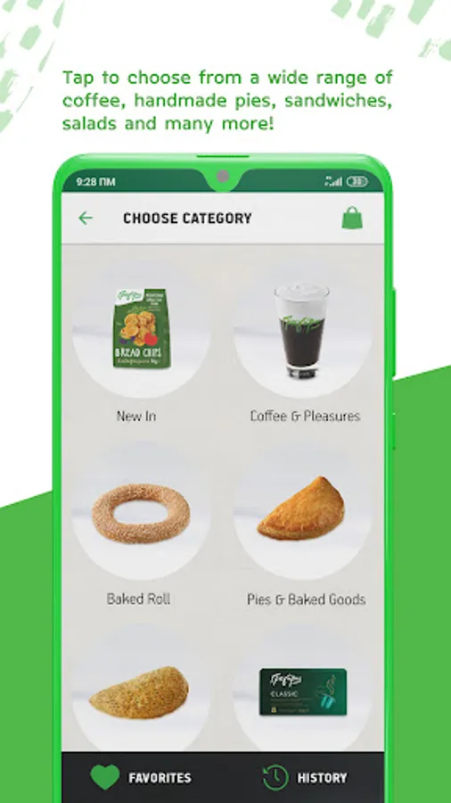 - place your orders easily and quickly, selecting from a wide range of handmade pies, sandwiches, salads and pastries