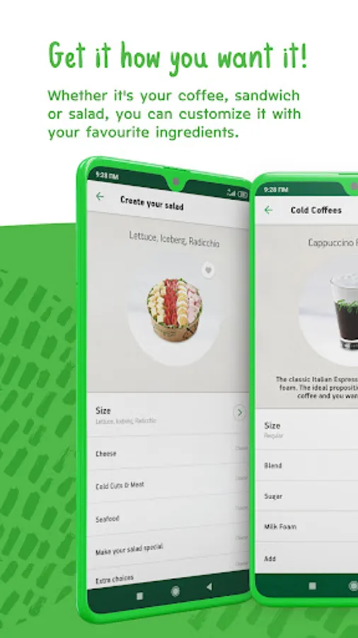 - order your favourite coffee or any other hot or cold beverage, such as hot chocolate, tea, freshly-squeezed orange juice or a mixed fruit juice