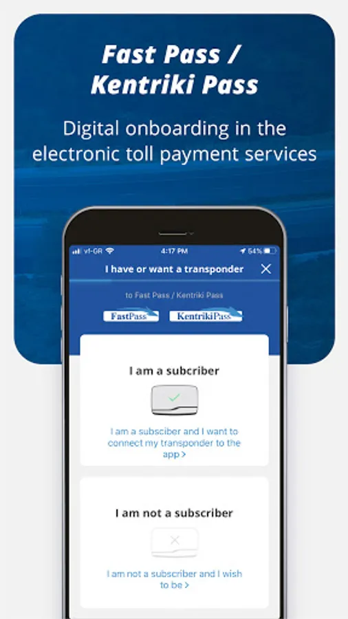 Nea Odos and Kentriki Odos motorways put their vast experience into good use by introducing the ultimate travel companion to your smartphone. With MyOdos, all information regarding your route or trip will be easily and quickly available, 24 hours a day, 365 days a year. Through the MyOdos app, you can register in the electronic toll payment services of Fast Pass and Kentriki Pass, and the transponder will be delivered to your home