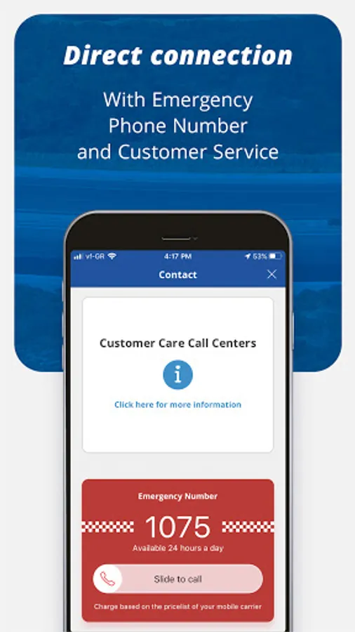 - Connect directly with the motorway’s emergency phone number (1075) or with Customer Service.