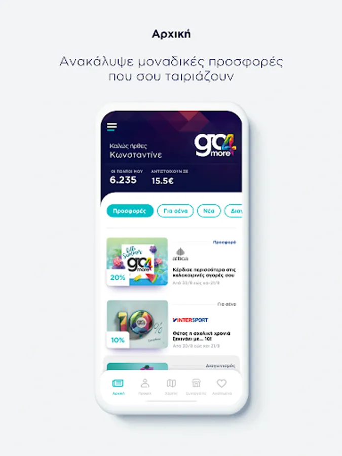 The National Bank of Greece’s go4more mobile application offers quick and easy access to over 6.900 partners wherever you are, while enabling you to view your disposable points at any moment!