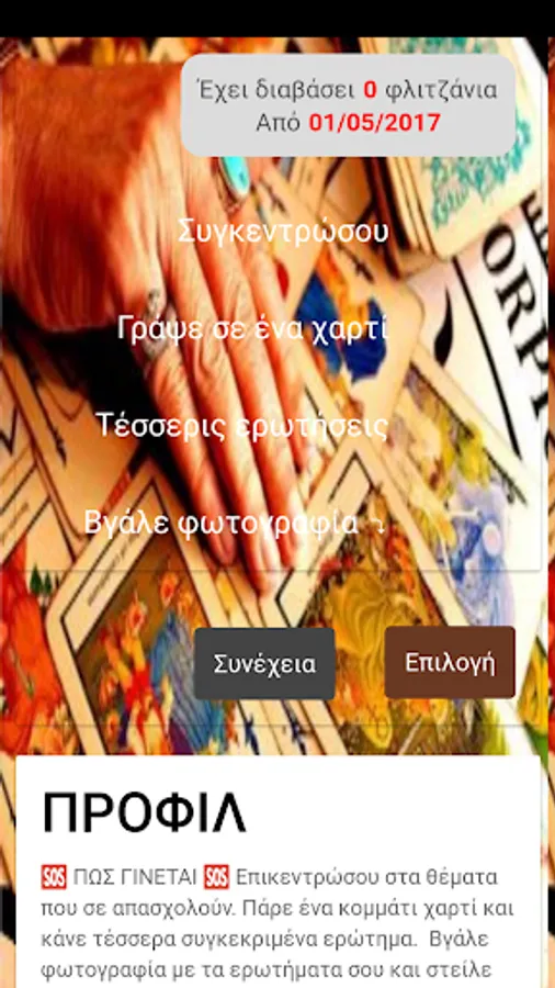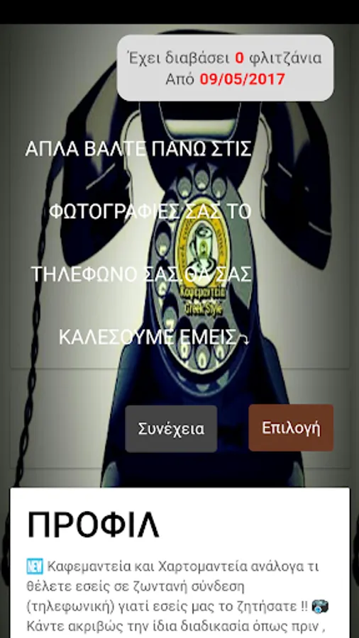 - VIP Membership for our users who do not want to wait the fortune teller during peak hours! Upgrade to VIP Subscribe now to read the "Kafetzou" your cup above all else and receive the projections as even your cup is hot! - Login using your Facebook account to automatically earn 30 free points.