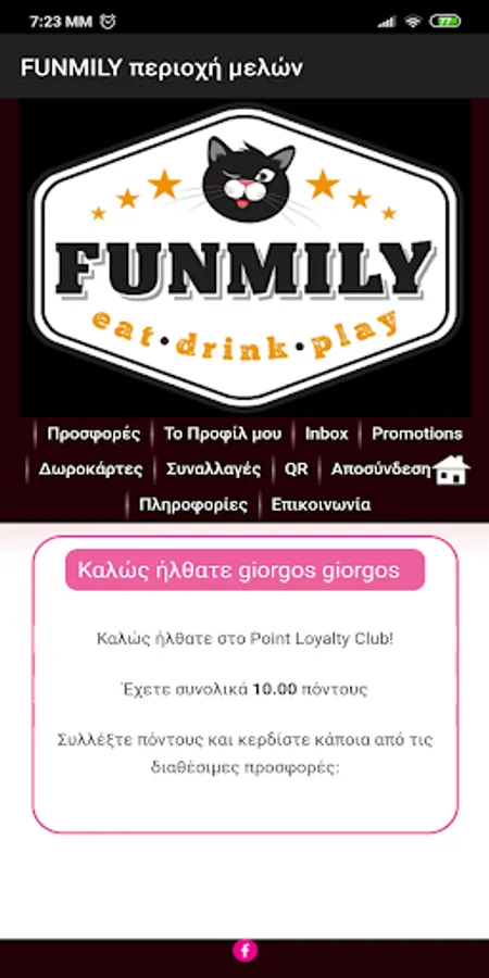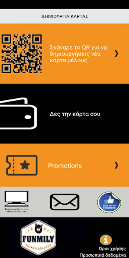 See your points, stats, Funmily membership offers only for members, especially Promotions. Funmily, a family entertainment venue. 114 Pantelis Street, Maroussi, funmily@funmily.gr, 21 0810 5300. Visit https://www.funmily.gr