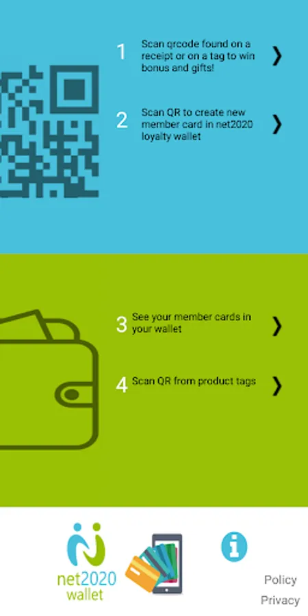 net2020 Loyalty wallet application. You can easily store your digital member cards from businesses that your are a member.