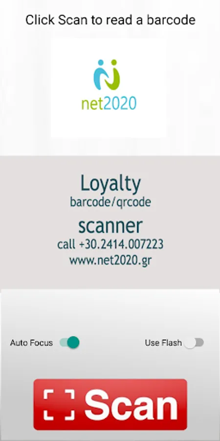 An qrcode/barcode scanner app that can work with micro-usb scanner or your phone camera. Barcode number or qrcode content is being forwarded to a specific url, actually to your account api in net2020 loyalty platform. For more information on how you can use this qrcode/barcode scanner please visit https://www.net2020.gr/