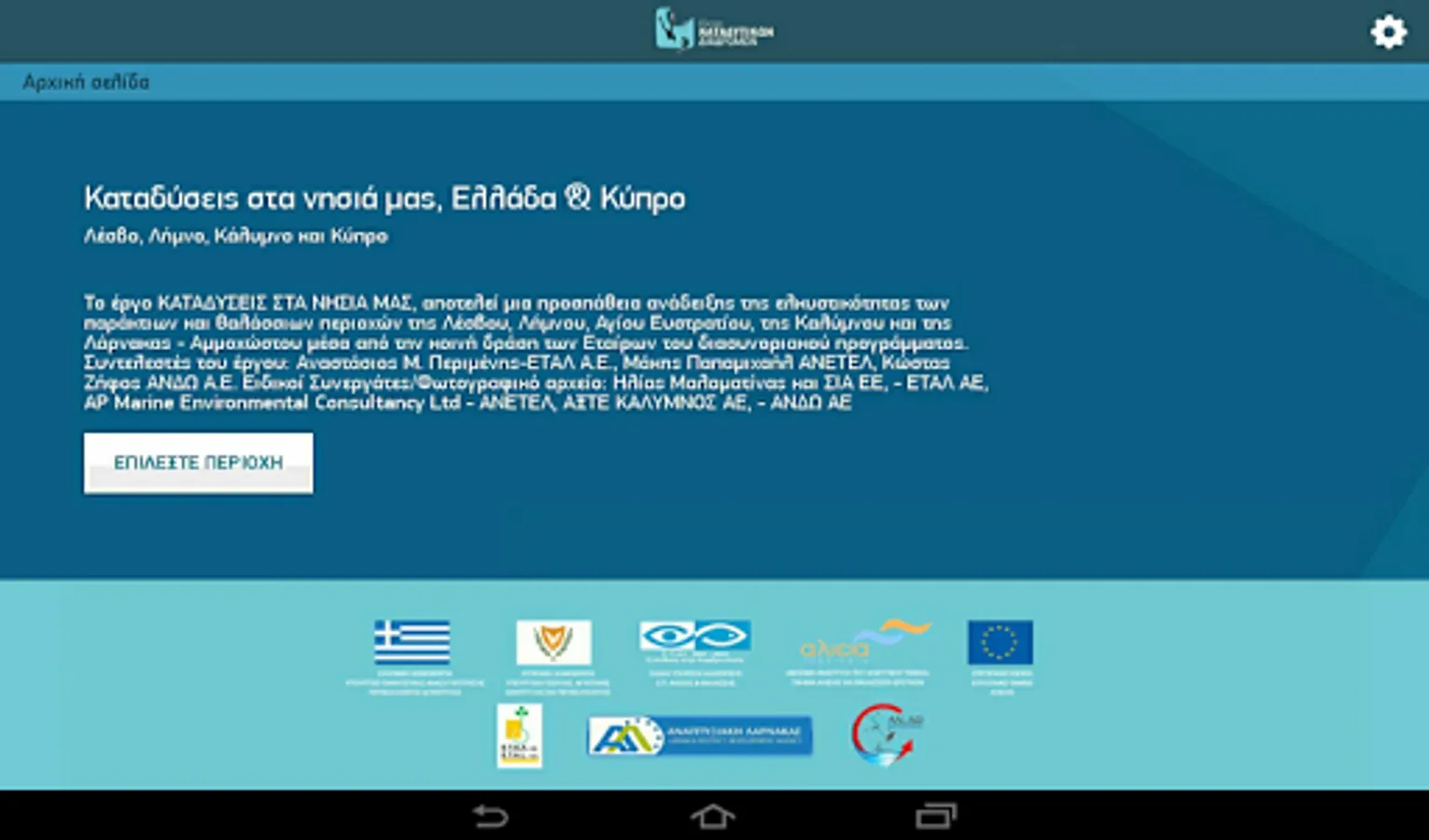 The project "DIVE IN OUR ISLANDS" is an attempt to show the attractiveness of our islands-areas, Lesvos, Lemnos, Agios Efstratios and Kalymnos for Greece, Larnaca and Famagusta Districts for Cyprus, under a common transnational cooperation project. The diving areas and diving routes are indicative and those interested in visiting the areas should do so with their own responsibility, following the standard practices and legal terms of each area and country.