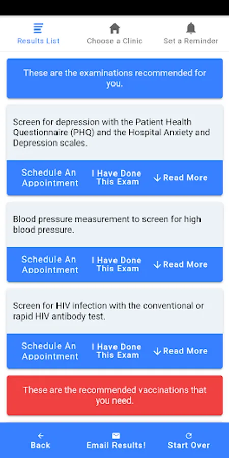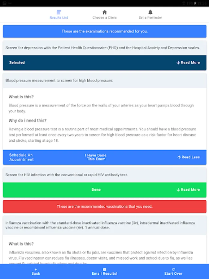 From there you will get recommendations about which physical examinations and vaccinations you should do, the closest clinics near you and a reminder service about scheduling them.