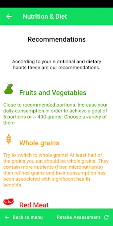 this option will determine your dietary habits and suggest recommendations about improving your daily eating habits.