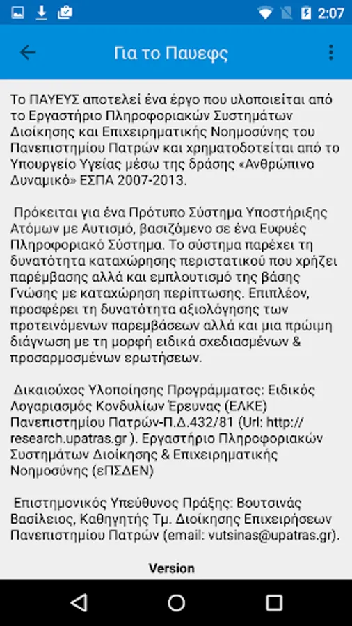 The PAFEFS is a project implemented by the Management Information Systems and Business Intelligence of the University of Patras and sponsored by the Ministry of Health through the action of "Human Resources" NSRF 2007-2013.