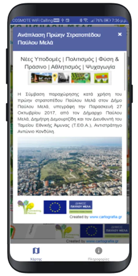 With this application you can see the under construction of the Metropolitan Park of Pavlos Melas.