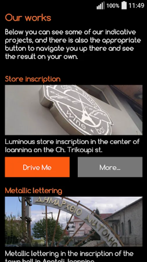 - The location of our company in Ioannina enriched with geolocation (GPS) capabilities, enabling you to easily find us using your device