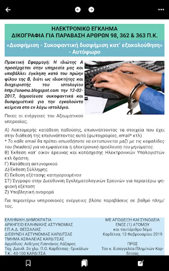 For the above reasons, we have decided to codify the copy of the Police Prosecution, so that we can keep up with the rapid technological developments and the colleague is always up to date in order to perform his / her duties unhindered.
