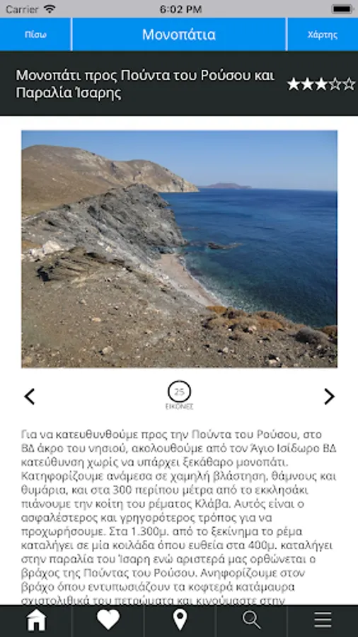 Explore Psara, through the rich collection of primary data (information and photos) collected through on-site collection and observation and presented through this mobile app.