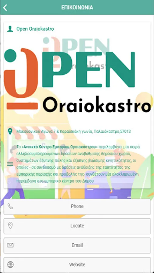The Open Oraiokastro Application is the App of the Entrepreneurship Platform of the Open Mall of the Municipality of Oraiokastro.