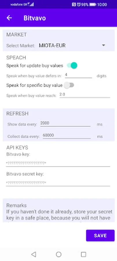 Bitvavo RNR is a cryptocurrency application. It uses information from the www.bitvavo.com platform. To be able to use the application, you must first