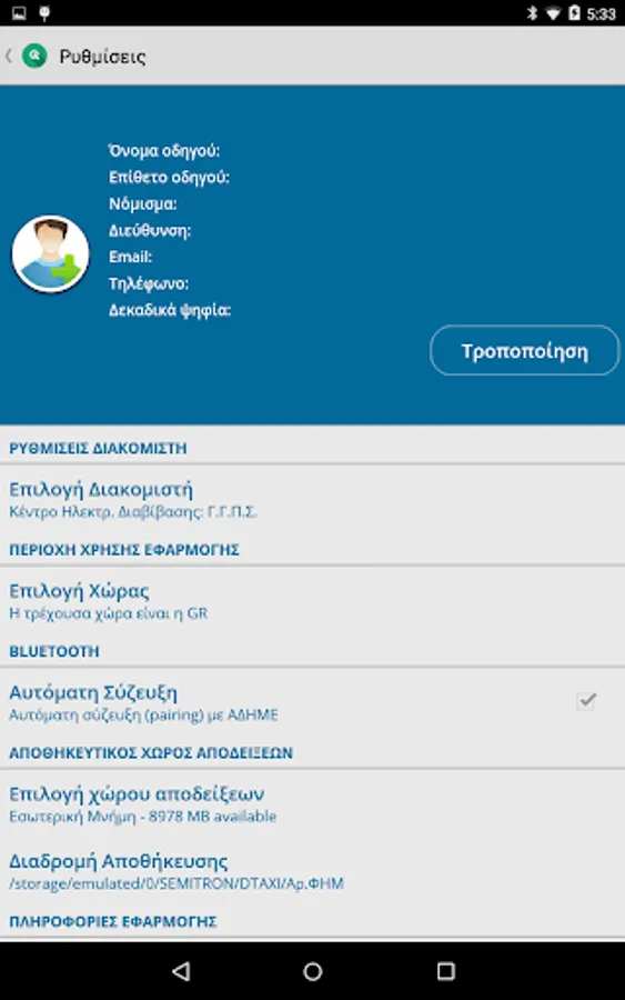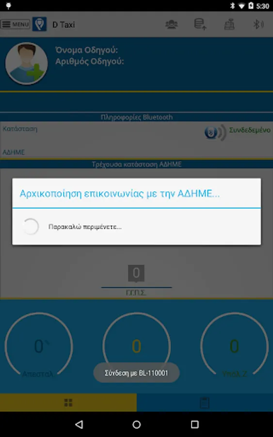 The DTAXI application is required to operate the taximeter-solicitous "P6C50". The interface of the application with the solicitous-taximeter "P6C50" is done via Bluetooth.