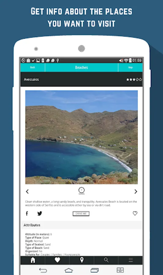 • Option to add and share comments and reviews for each point of interest in Serifos.