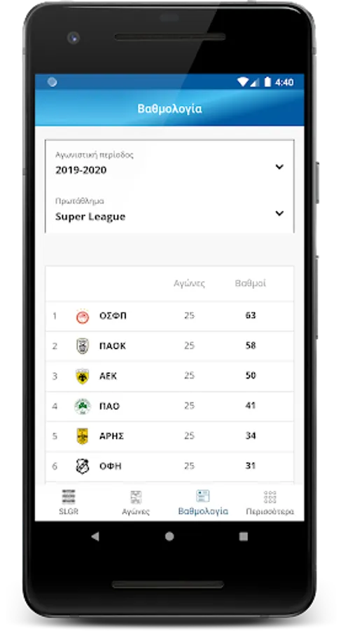 Super League Greece official application, featuring exclusive content, news, matchday live, fixtures, results, match previews, tables, video, stats, player and club profiles, MVP and Best Goal competitions, youth leagues, fantasy league.