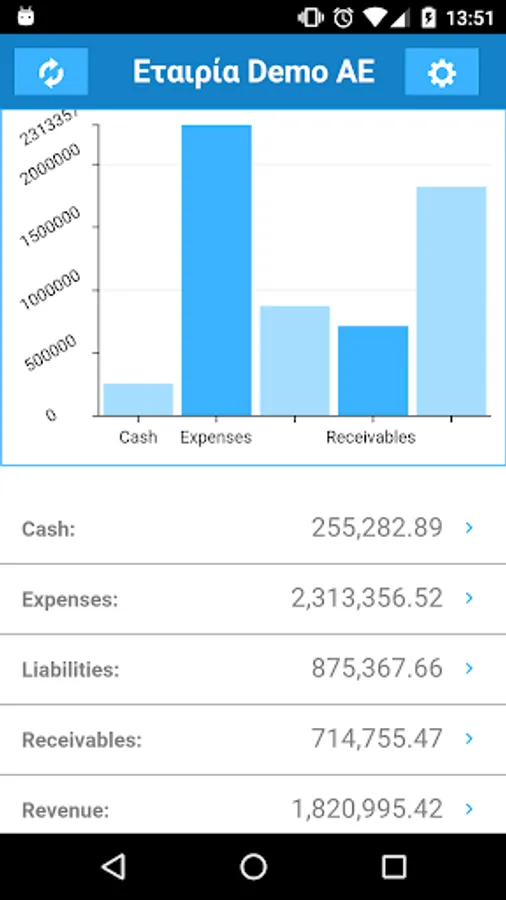 The application allows the safe and reliable access to headquarters installed Soft1 business applications and presents fundamental economic values, such as income, expenses, accounts receivable, accounts payable and cash on hand.