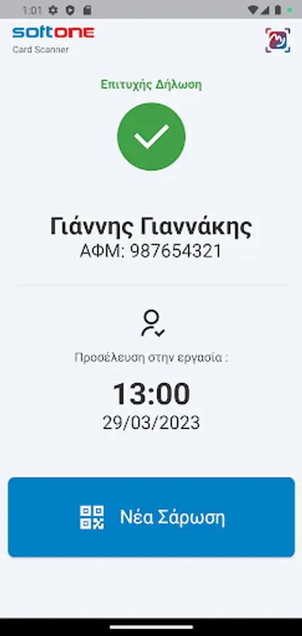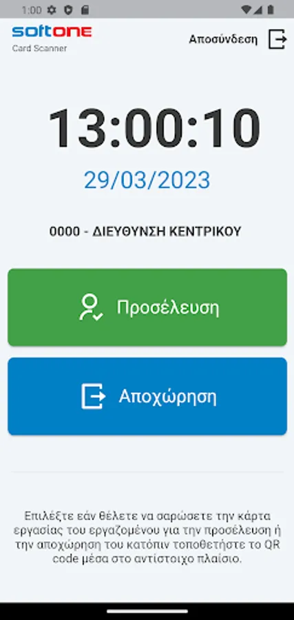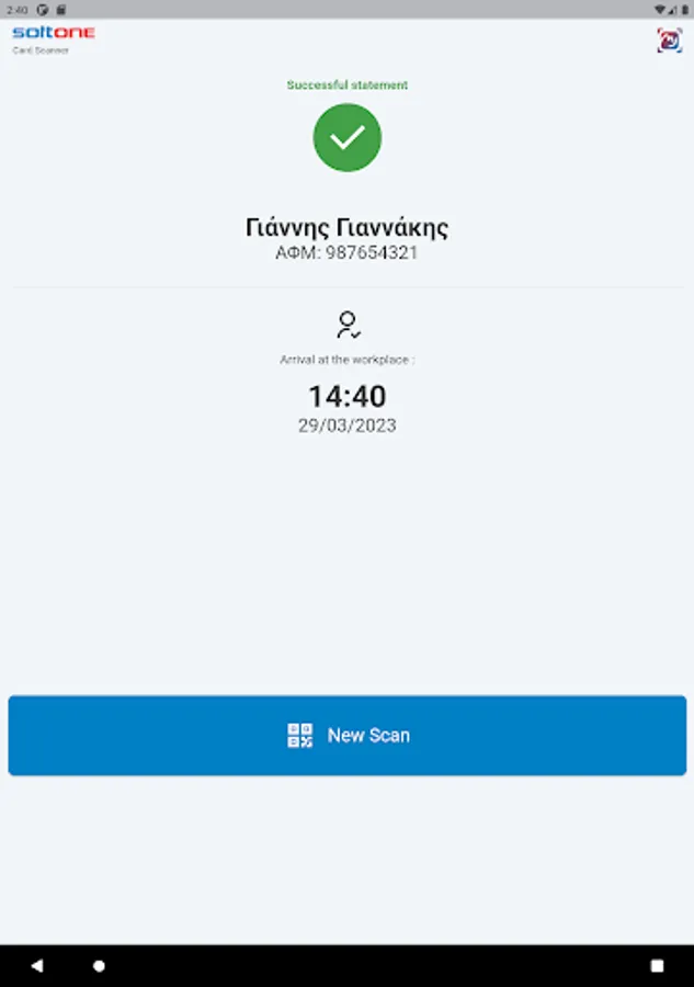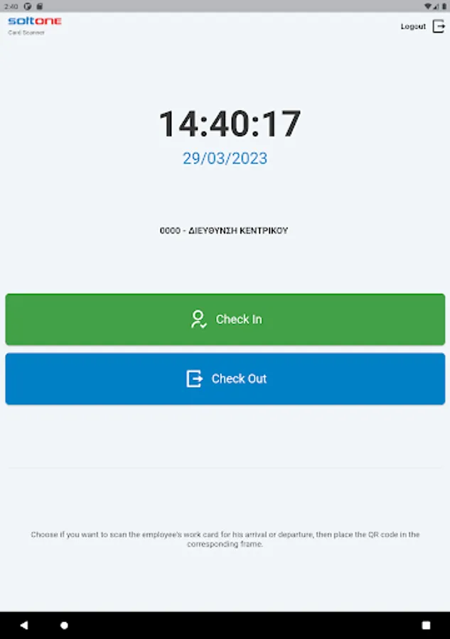 Employees upon arrival & departure at the company, scan the QR Code of the digital work card and the application through Soft1 HRMS automatically transmits the data to ERGANI in real time.