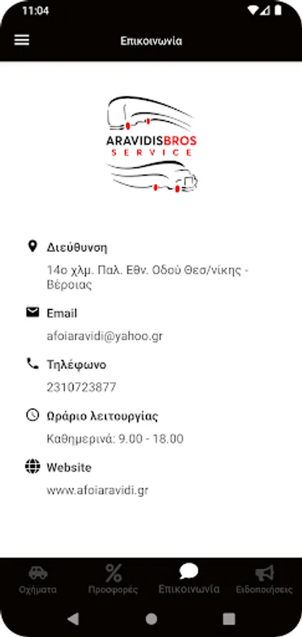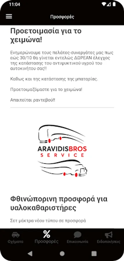 The Aravidis Bros Service app is an innovative application for the country's workshops data. It replaces the classic vehicle maintenance book with an electronic one. Every work done is registered either by us or by the customer. It should be noted that the first entry must be made by our workshop. Notifications of scheduled future work are sent as well as notifications of possible offers for certain periods. Supports one and more vehicles per user. It is a vehicle maintenance file organization tool.