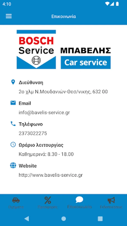 The Bavelis Service application is a pioneering application for the data of the country's workshops. Replaces the classic vehicle maintenance book with an electronic one. Every work performed is registered either by us or the client. Note that the first registration is mandatory by our workshop. Notifications of scheduled future assignments are sent as well as notifications of possible offers for some periods. Supports more than one vehicle per user. It is a tool for organizing their vehicle maintenance file.
