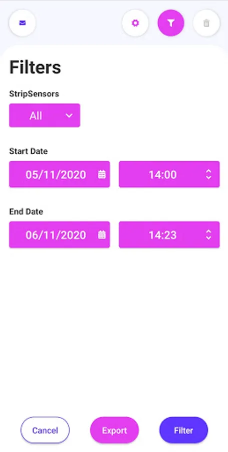 The user can view all measured data gathered from the STRIPSENSOR® Devices that are registered to his account. This data includes: