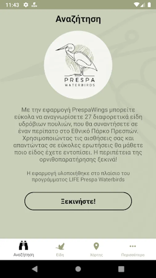 The application was created under the LIFE Prespa Waterbirds - LIFE15 NAT / GR / 000936 program