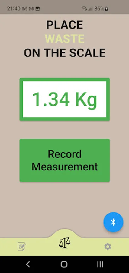 of waste can be recorded automatically - using a Bluetooth scale - or manually. All records