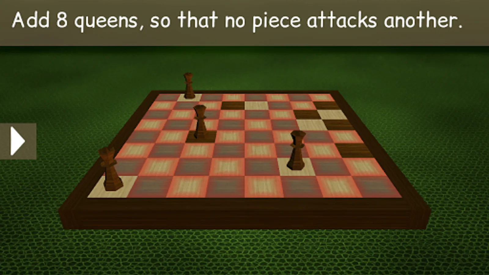 The most complete collection of mathematical chess problems. Try to solve problems such as "8 queens" and "knight's tour". Some new interesting variations are also included. The full edition offers a total of 22 problems.