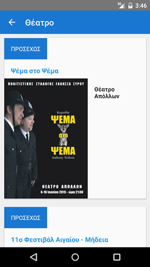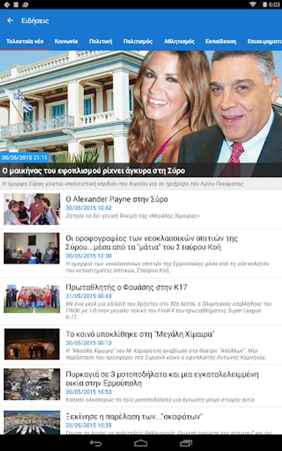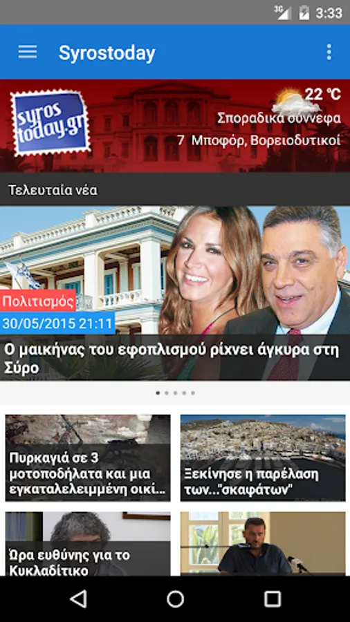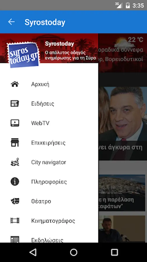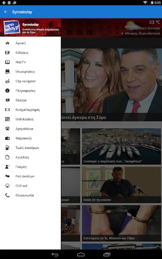 The ultimate guide for the island of Syros. Information about the island and what's happening as: local news, theatre, cinema, events, local business directory, timetable-itineraries, pharmacies and local video news (Web TV).